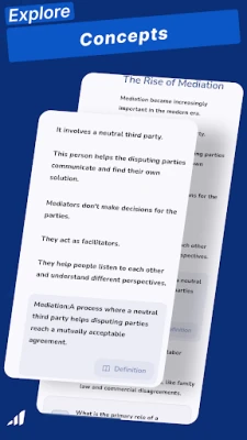 Explore Alternative Dispute Resolution (ADR) with our comprehensive app, designed to simplify complex concepts. Whether you are a law student, legal professional, or someone interested in conflict resolution, this app offers clear explanations, interactive questions, and complete offline access.