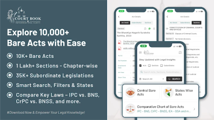 Whether you're searching for "Bare Act in Hindi," "Free Legal Advice," or the "Indian Constitution," Court Book has you covered.