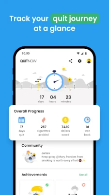 🏆 Achievements: your motivations to quit smoking: Just like any other task in life, quitting smoking is easier when you break it down into smaller, manageable steps. QuitNow offers you 70 goals based on the cigarettes you’ve avoided, the days since your last smoke, and the money you’ve saved. This means you can start celebrating your accomplishments right from day one.