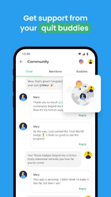 💬 Community: the ex-smokers' chat: When you quit smoking, it’s important to stay in non-smoking environments. QuitNow provides a chat filled with people who, like you, have bid farewell to tobacco. Surrounding yourself with non-smokers will make your journey smoother.