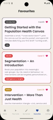 • Personalised Favourites: Tailor your experience by saving favourite playcards, empowering your team to develop customised and unique approaches tailored specifically to your population health goals.
