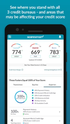NOTE: A ScoreSense account is required to access the ScoreSense app. If you are not a ScoreSense member, sign up for a free, 7-day trial and get access to your credit scores, credit reports and credit monitoring.